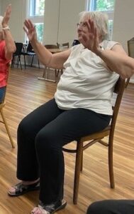 I lost my husband last December; we had been married for 49 years; it was like losing an arm. I had stayed at home depressed for 6-months, most days I just stayed in bed unable to face the world. Friends did try to get me to come out, but I found the grief too difficult. My health conditions were getting worse; I have arthritis and sciatica they really restrict my movements and cause pain. Injections for pain did not help and went to see MSK cats, they suggested I lose weight to help my knees and mobility. I cannot stand for very long so my options for exercise are quite limited. I saw a Facebook post from Halton Borough Council about chair based – active bingo in the Tea tree café and thought I should try it to help my knees.