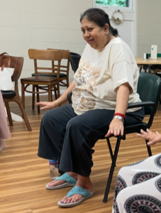 My brother who lives in America was really worried about me, but now he knows I am in good hands. Paula runs a wonderful class, it has become an extremely popular class because people who try it, love it. I am so happy to be part of it, my leg strength is improving and I’m walking a little more. I am feeling more confident and I’m happy to be out of the house with lovely people. I have made friends in active bingo; I was invited to meet up for lunch with another lady after just 1-week and Santosh also keeps in touch to make sure I am okay and brought me food when my kitchen was being refurbished. Six months ago, I would have been at home in my pyjamas, but now I am enjoying life.